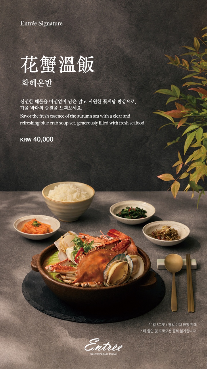 신선한 해물을 아낌없이 담은 맑고 시원한 꽃게탕 반상으로,