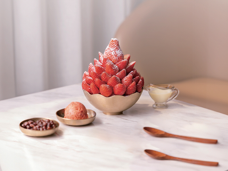 더 라운지 앤 바에서 싱그러운 딸기를 듬뿍 올린 딸기 빙수를 선보입니다.