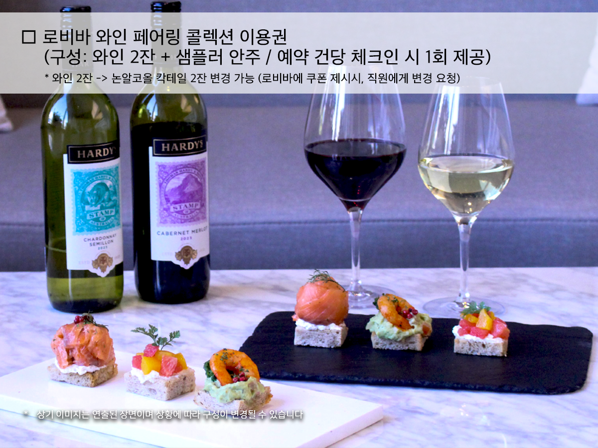 * 와인 2잔 -> 논알코올 칵테일 2잔 변경 가능 (로비바에 쿠폰 제시시, 직원에게 변경 요청)