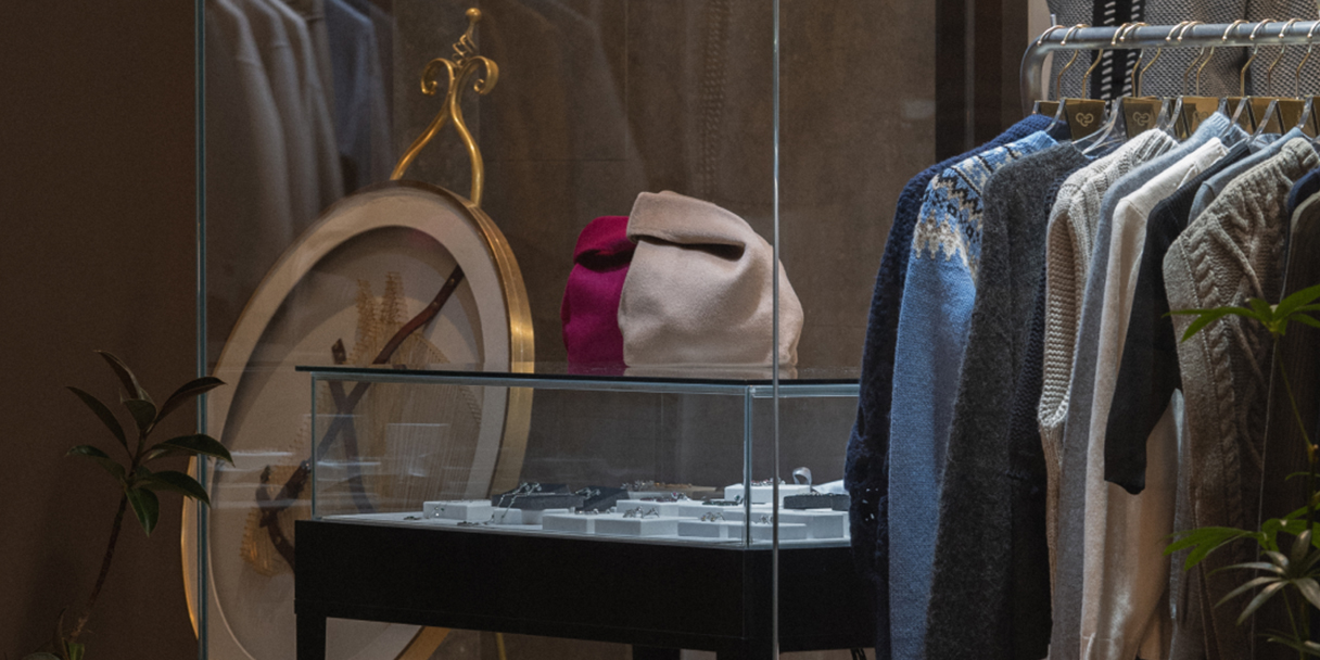 캐시미어 의류를 중심으로 여성 의류, 주얼리, 가방, 아트 액자를 함께 선보입니다.