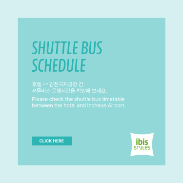 | Free Shuttle Bus | If you take the shuttle bus in front of Incheon Airport Terminal 2, you can arrive at the stop in front of the hotel in about 10 minutes. • Exit 5 (Gate 5B) on the 1st floor of Incheon Airport Terminal 2 • Take a circular bus to the long-term parking lot. • Get off at 'Reserved parking C' and walk for about 2 minutes to see the entrance to the hotel. • Interval : 8~16 minutes (https://youtu.be/3Sds9REksZw) |