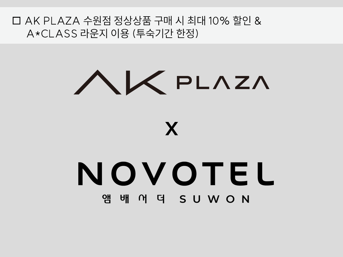 노보텔 앰배서더 수원[Special PKG] AK PLAZA Suwon 특전 패키지 📌ROOM+조식 2인+룸서비스 석식 2인📌