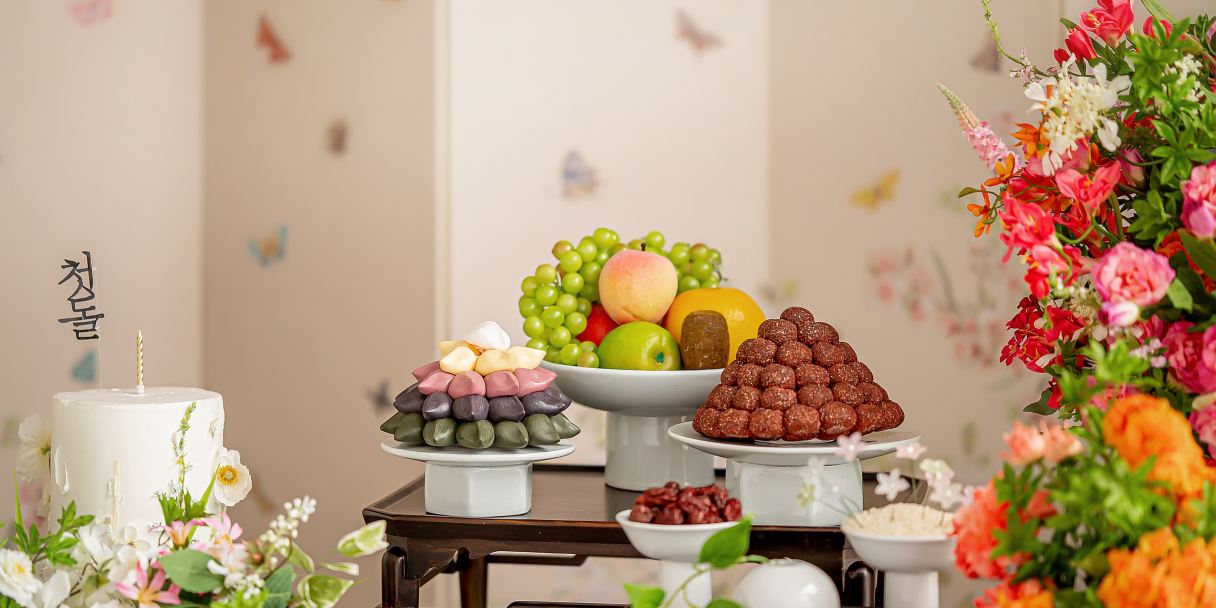 모던하고 여유로운 공간의 그랜드볼룸 '라온'은 최대 200명까지 수용 가능해 대규모 돌잔치에 적합합니다.